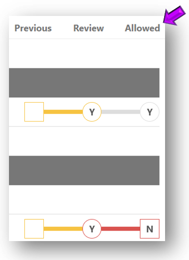 When the access model is enabled, they can be used in reviews and when creating personnel events. Within a review, reviewers will see both a Review column and an Allowed column (as shown below). The Allowed column shows whether the permission is allowed based on the access model(s) the user's matched identity is enrolled in.
