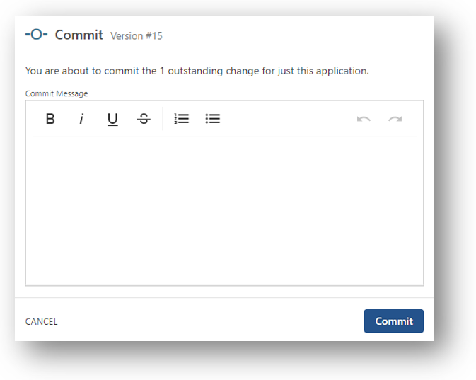 4. When you're confident in the changes, select the Commit Version button. The Commit window appears (see picture below).